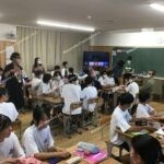 English Dayとして多くのALTに来ていただき、2年生の英語の時間に入り込んでもらいました。各班1人以上のALTが入り、自己紹介をはじめ、英会話を楽しみました。見ていただいた先生方からたくさんのお褒めの言葉をいただきましたよ。これからも英語を楽しみましょう!