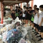 4日間にわたり、保護者の方々にアルミ缶等を持ってきていただき、11日(土)に業者のコンテナに積み込みました。PTAの健康厚生部の方々と卓球部・吹奏楽部・野球部の生徒が手伝ってくれ、大量の段ボールやアルミ缶を積み込むことができました。ありがとうございました。