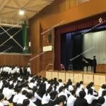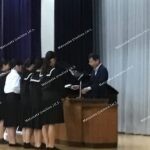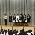 そして後期生徒会役員も校長先生から認証状を受け取り、会長が代表して抱負を語ってくれました。中でも「あいさつ」の話は印象的でした。そして、先日、伝達式があった「交通安全推奨像」を紹介し、交通安全についても話してくれました。先輩たちから受け継いだものをしっかり継承し続けてくれることでしょう。
