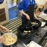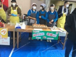 その一つ、中原文化祭には、家庭部が参加し、豆腐ドーナツをふるまいました。嬉野豆腐を使用した豆腐ドーナツは嬉野中学校の伝統の味であり、先輩から受け継いだ家庭部の生徒たちが協力し、今年も地域の方に喜ばれました。