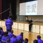 生活生徒指導の先生からは、漢字を使い、言葉の重みや考え方などを伝えてもらいました。